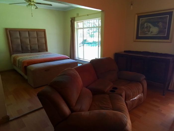 Country-living retreat in Valley Settlements with expansive garden and mature trees, enclosed entertainment lounge with built-in braai and sparkling pool; three bedrooms, two baths and double garage.
