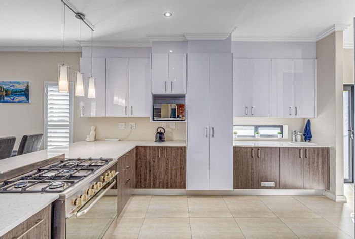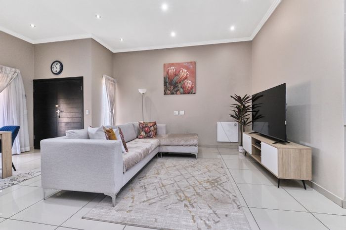 Effortless family living in sought-after Barbeque Downs, Midrand, with seamless indoor–outdoor entertaining on a covered patio, modern kitchen with scullery, and three bedrooms, two bathrooms.