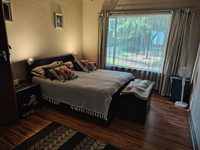 Peaceful suburban retreat in sought-after Pretoriuspark, Garsfontein, set on a generous stand with thatched charm — features a lapa with built-in braai, balcony, four bedrooms, three baths.