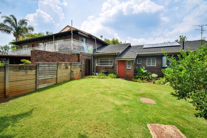 Eco-conscious family living in Roodepark Eco Estate, Kameeldrift East, Pretoria — open-plan living, expansive garden with dual covered patios. Four bedrooms, three bathrooms, two garages.