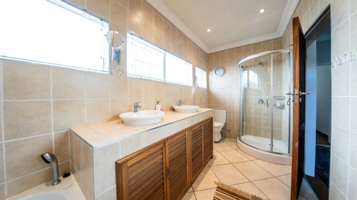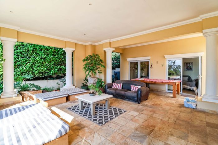 Entertainer's retreat in the heart of Pretoria with expansive gardens and a stylish patio, open-plan living and generous kitchen. Four en-suite bedrooms, four baths and double garage on 2,484 m².