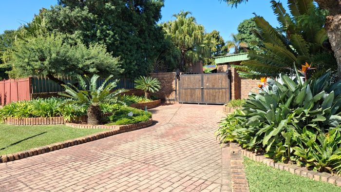 Tuscan-inspired family home in secure Mooikloof Gardens, Pretoriuspark — sunlit open-plan living with private home-office entrance, courtyard cattery, covered braai patio and pool. Four bedrooms, four baths.