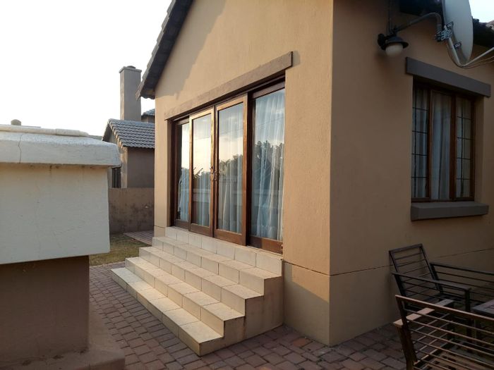 Entertain effortlessly and relax in Monument Park living, with a covered patio, built-in braai and boma, landscaped garden, modern kitchen, study — three bedrooms, 2.5 baths, double garage.