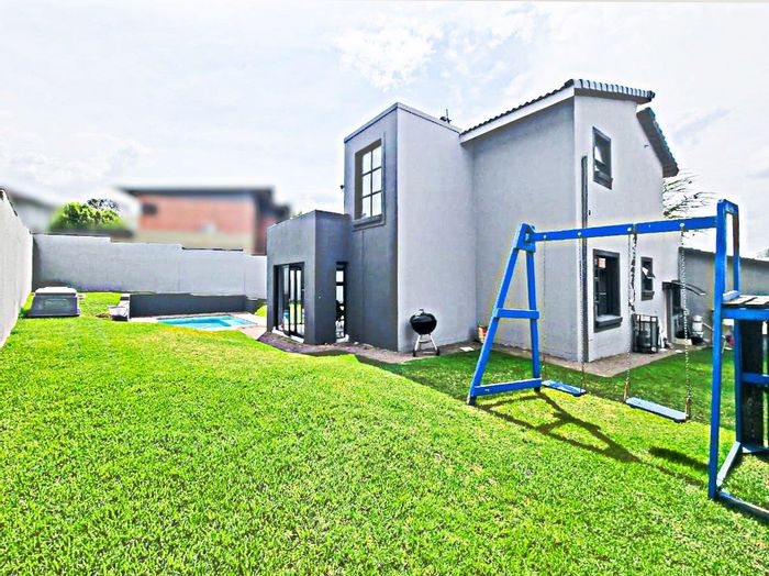 Family-focused living in Boardwalk-Olympus, East Pretoria — easy access to Menlyn Maine and Woodlands Mall, with a large garden and pool, island kitchen, balcony view; three beds, 2.5 baths, double garage.