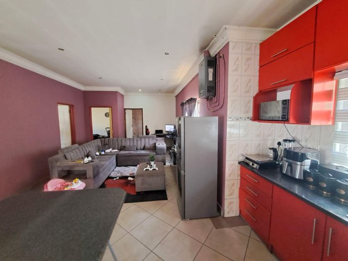 Family-focused living near Nkomo Village Mall in Atteridgeville, with open-plan entertaining and a modern kitchen, paved low-maintenance yard, four bedrooms, two bathrooms, single garage.