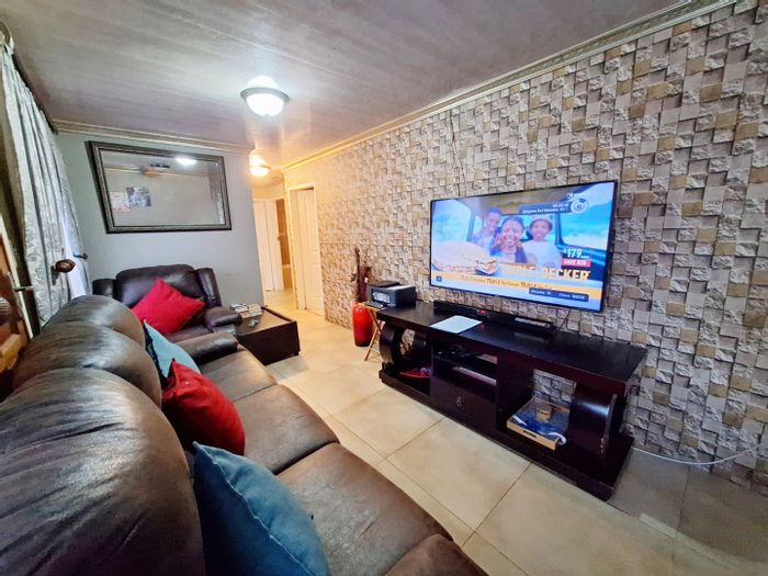 Family living near TUT and Pretoria CBD in Philip Nel Park, lounge flowing to contemporary kitchen with breakfast nook, paved yard and built-in braai — four bedrooms, two baths, garage.