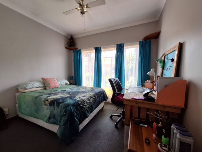 Entertainer’s paradise for multi-family living in a peaceful, convenient neighborhood; huge undercover braai/bar overlooks the pool — three dwellings yield R26,000pm, seven beds, four baths, plus garage.