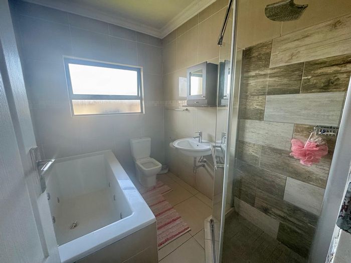 Relax and entertain in a secure estate with modern connectivity and solar backup; enclosed patio with built-in braai, two living areas, four bedrooms, three bathrooms, double automated garage.