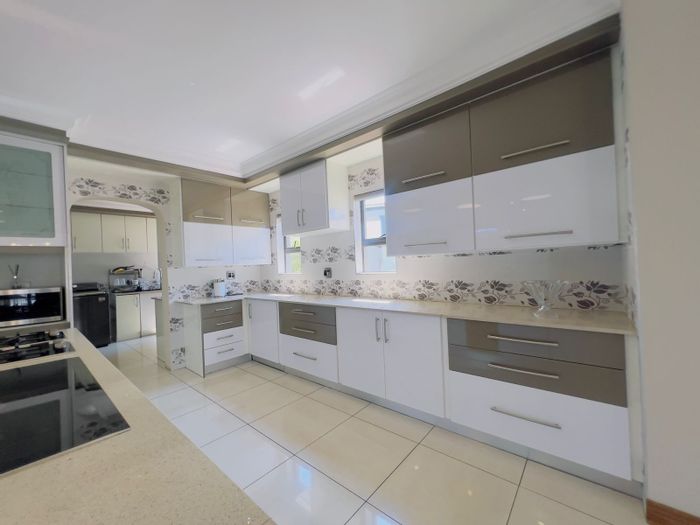 Family-focused entertainer in a serene neighbourhood, featuring a gas-equipped kitchen with scullery, pool and boma beside a landscaped garden — four bedrooms, three bathrooms, double garage.