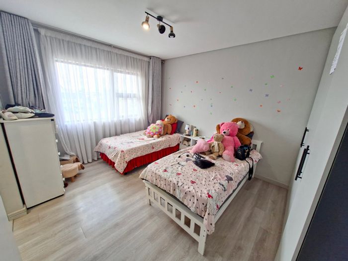 Effortless family entertaining in Six Fountains Estate, Pretoria East, with a covered braai patio, sparkling pool and manicured garden; five bedrooms, en-suites and triple garage.