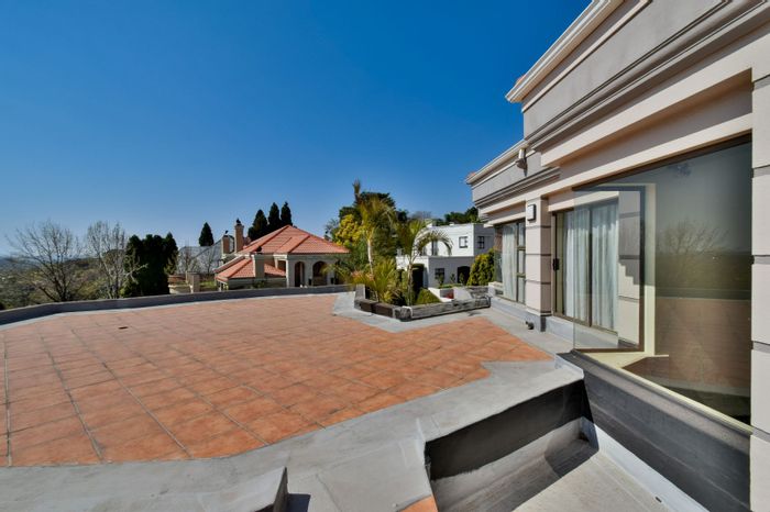 Entertainer's hilltop retreat in Waterkloof, steps from Pretoria Country Club — north-facing with uninterrupted views and a private garden; four bedrooms, three bathrooms.