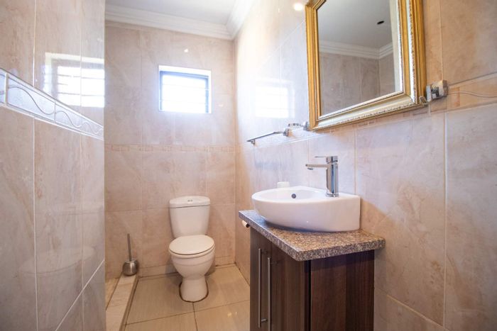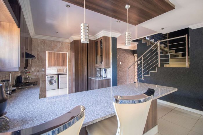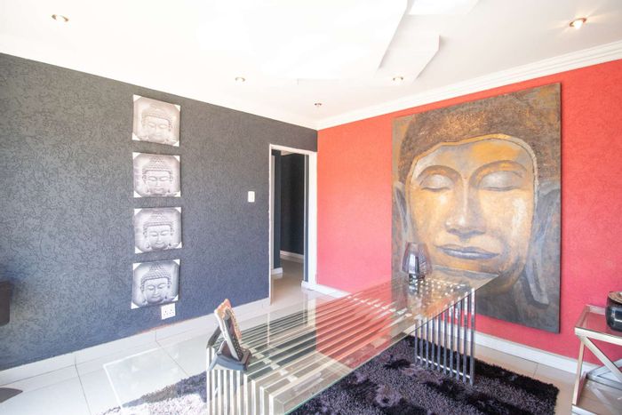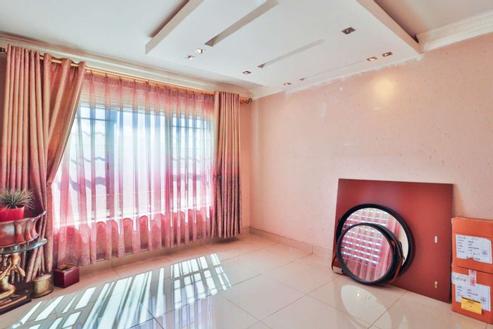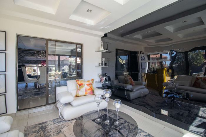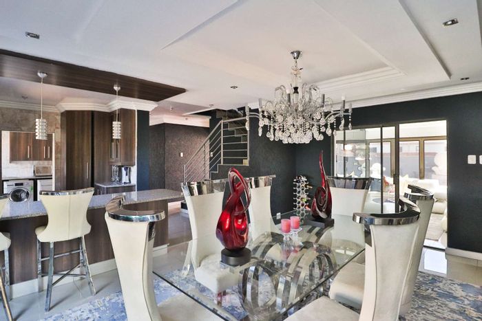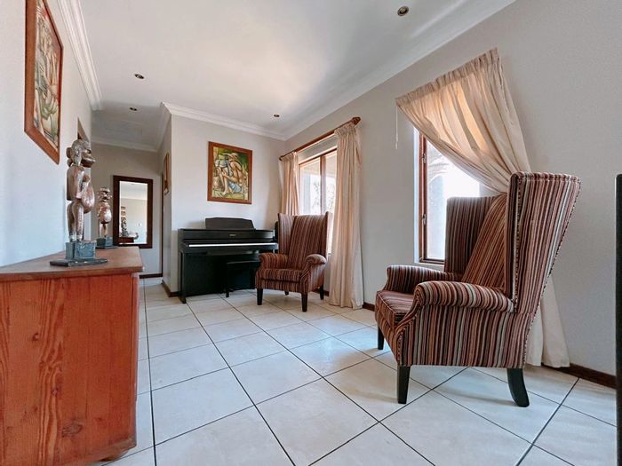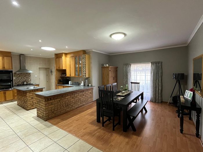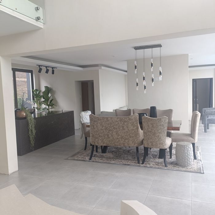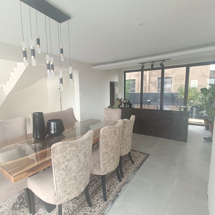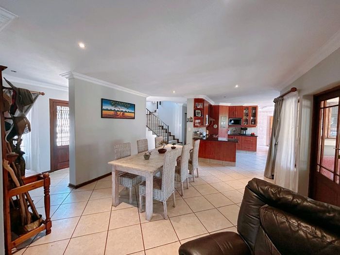 Entertainer’s double-storey family home in Rayton—minutes from Cullinan and the N4. Solar-ready, pool, cinema room, exposed-beam open-plan living with frameless glass patio. 5-bed, 3-bath, double garage.