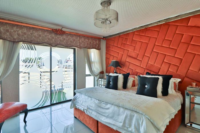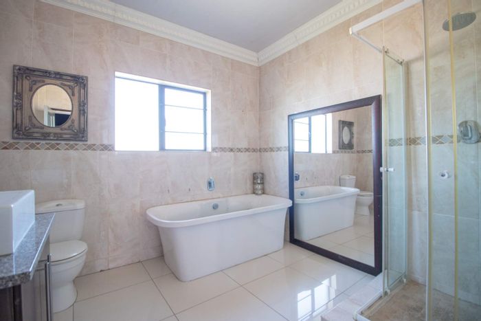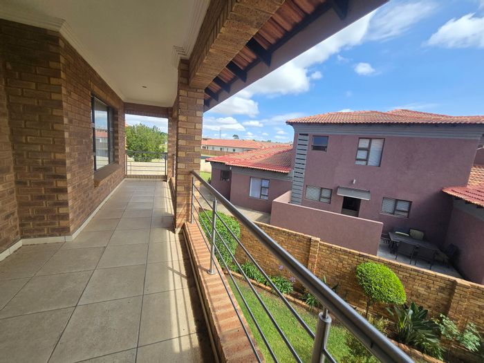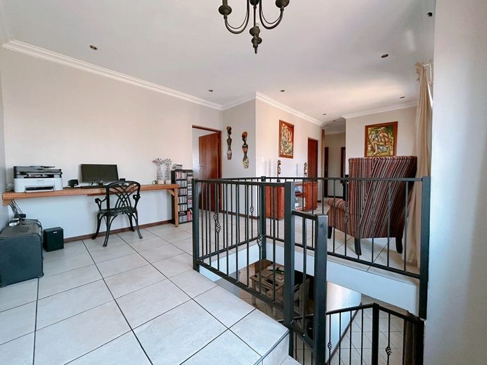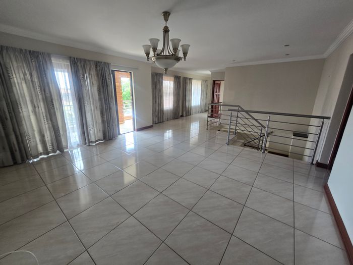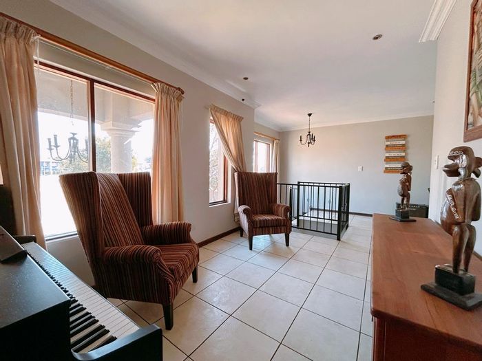 Effortless family living in Rayton Estate, Pretoria, with a private balcony offering panoramic garden and estate views; pajama lounge and six bedrooms, five en-suite bathrooms.