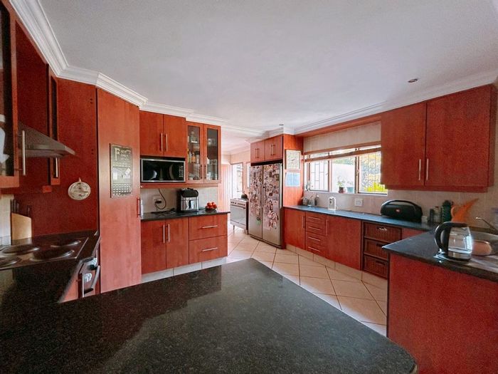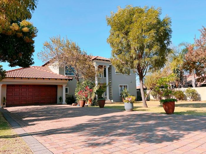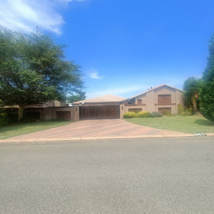 Elevated family entertainer in Rayton Estates with glorious estate views, covered patio with braai and pool, huge granite kitchen and study — five bedrooms, four bathrooms, two double garages.