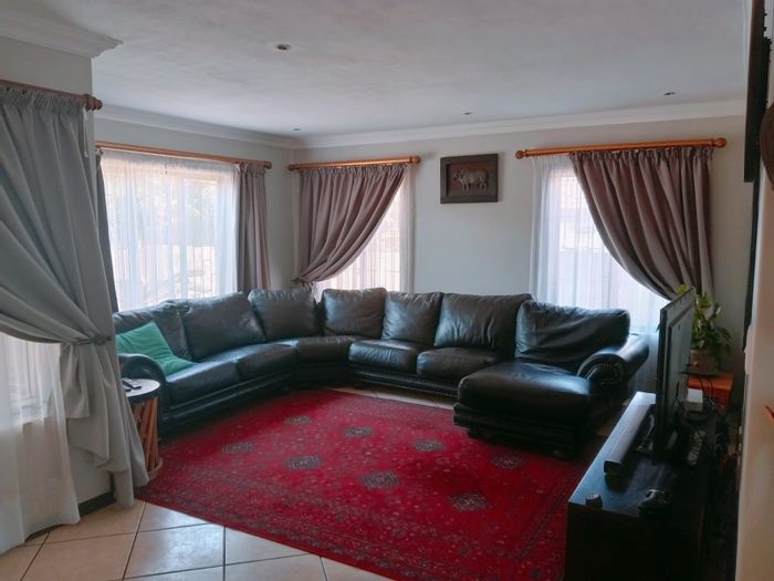 Family-ready living in secure Rayton Manor estate with expansive open-plan lounge, TV room and study for remote work, low-maintenance paved courtyard and double garage; four bedrooms, two baths.