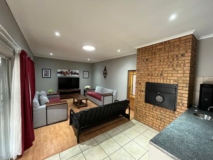 Family-friendly home steps from a Primary School and Pick n Pay Centre, featuring sunny open-plan living, a cozy fireplace, well-equipped kitchen, master en-suite and double garage.