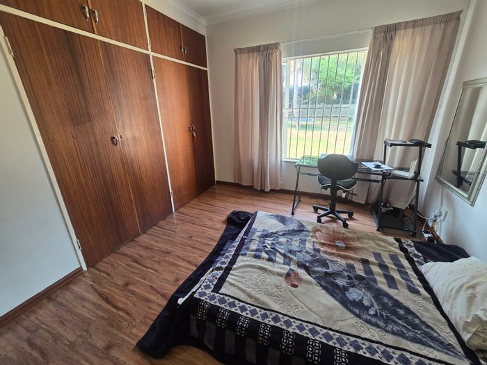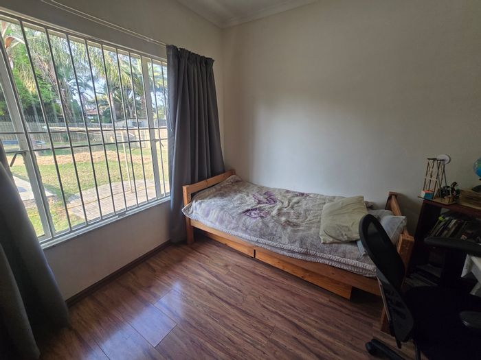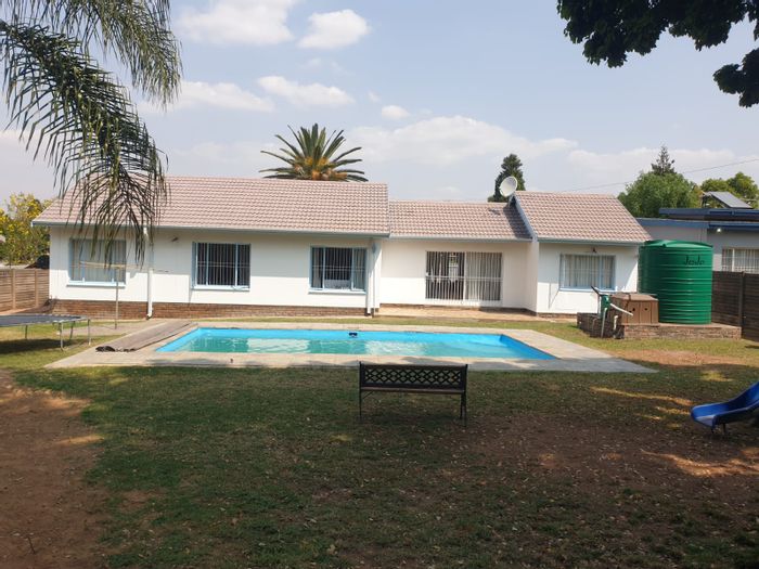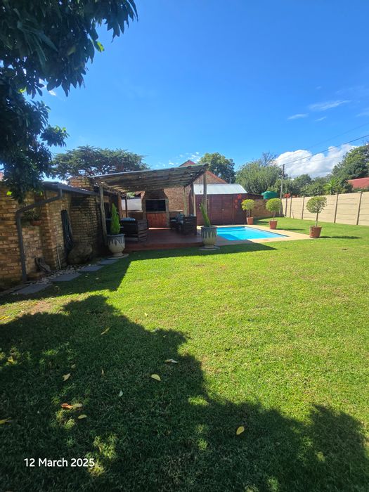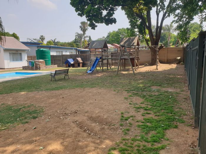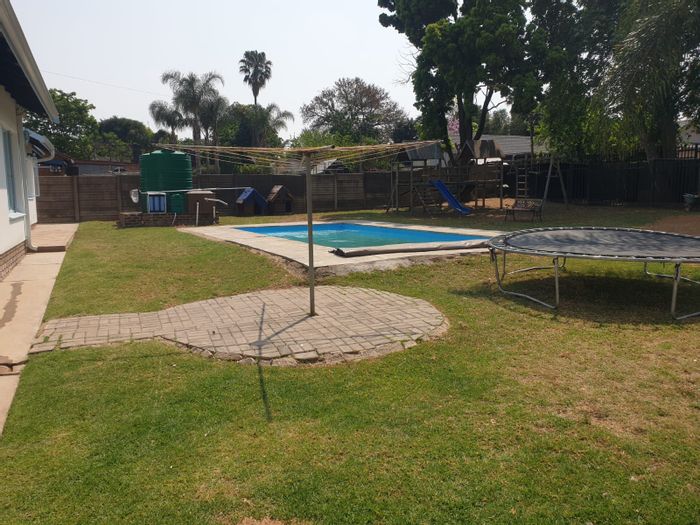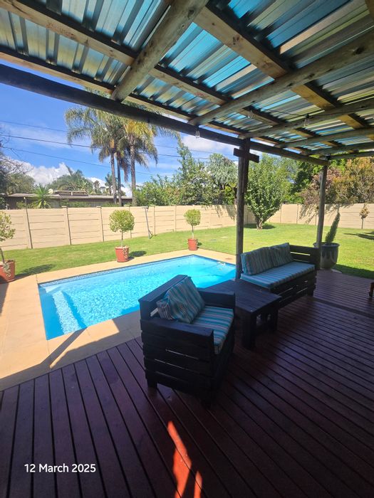 Expansive family oasis on 1,115 sqm in a quiet, tree-lined setting — pool, huge garden with jungle gym, borehole with 5,000L tank and irrigation, outdoor room/kennels; 3-bed, 2-bath, double garage.