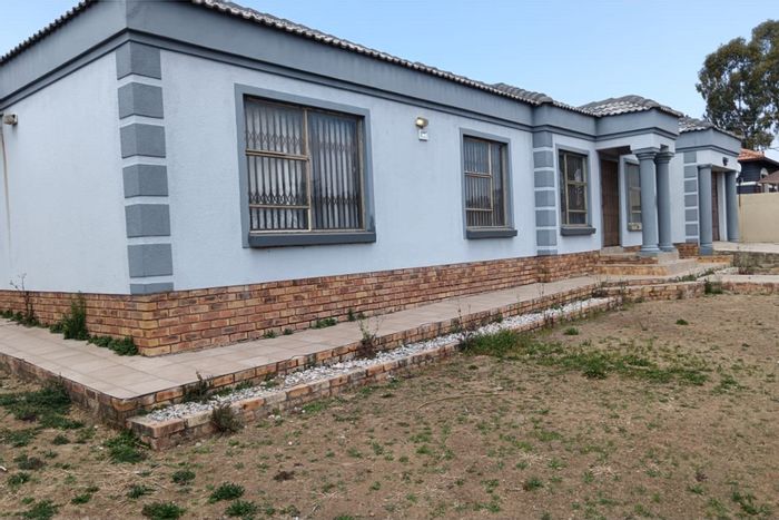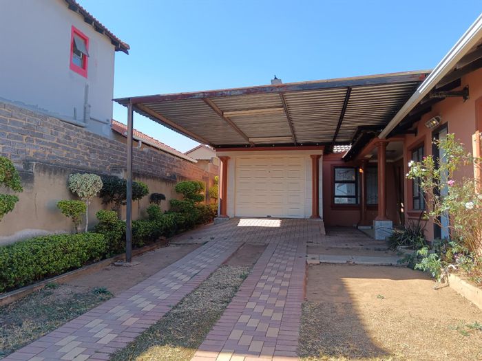 Family-friendly living in Cosmo City Ext 6 (Iceland) with low-maintenance paved yard, income-generating two outside rooms, triple carport, and three bedrooms plus three bathrooms.