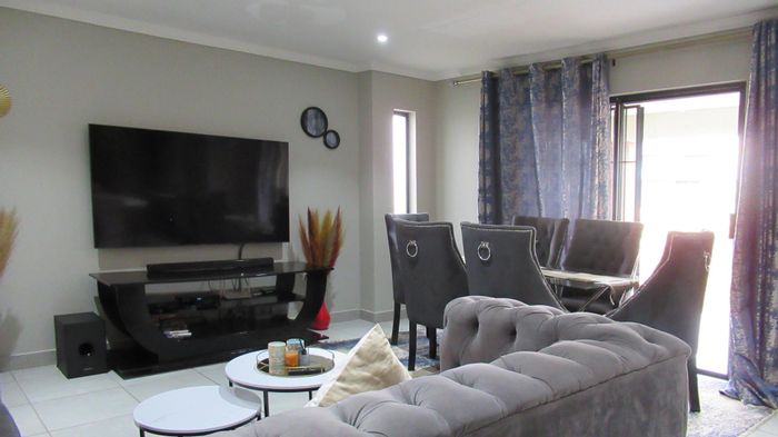 Secure family living in Cosmo City's gated extension, minutes from Jackal Corner Mall and schools, featuring an open-plan kitchen and three bedrooms, two bathrooms plus double lockable garage.