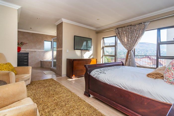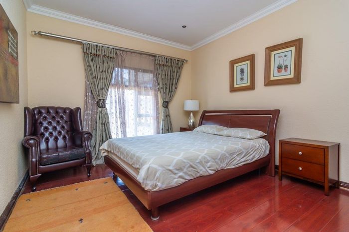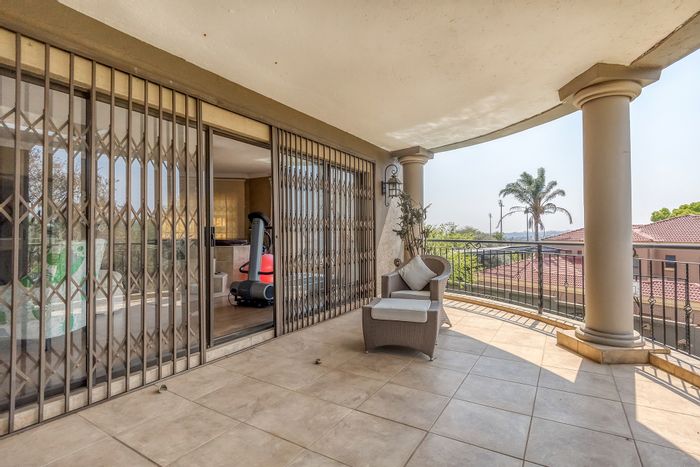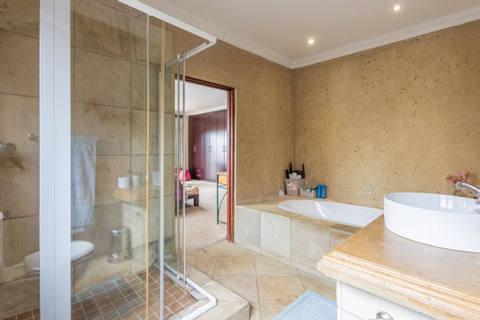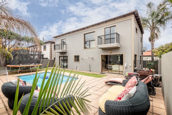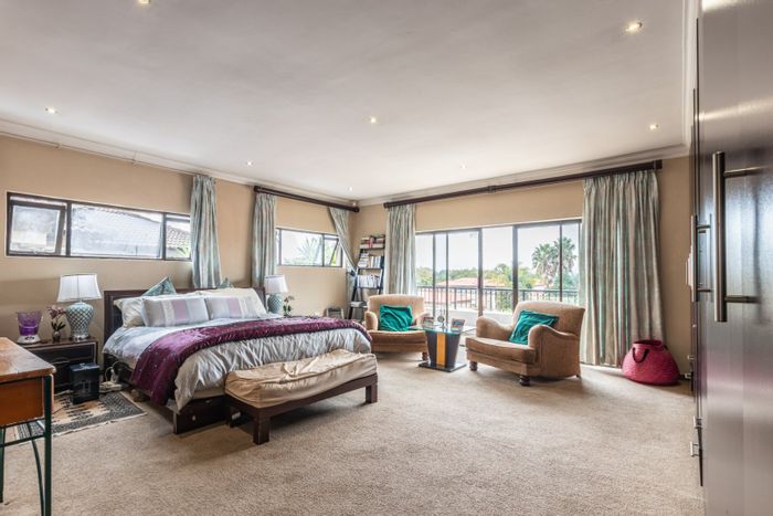 Entertainer's paradise in a sought-after estate, with pool and built-in braai opening to glass doors, balconies off main and second bedrooms, four bedrooms and three automated garages.