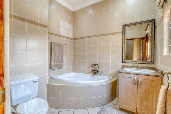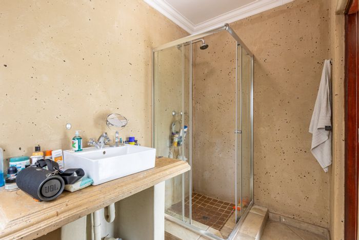 Resort style living in prestigious Ruimsig Golf Estate with enclosed patio and built-in braai, pool and jacuzzi for entertaining. Four bedrooms, four bathrooms and double garage.