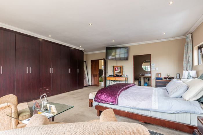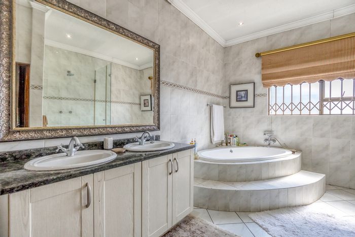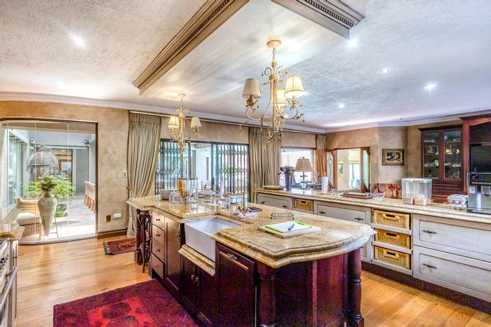 Entertainer's dream on expansive private grounds, set on 2,500m² with tranquil privacy; features entertainment wing with bar, sauna, pool and spa-like master with jacuzzi; flatlet and six garages.