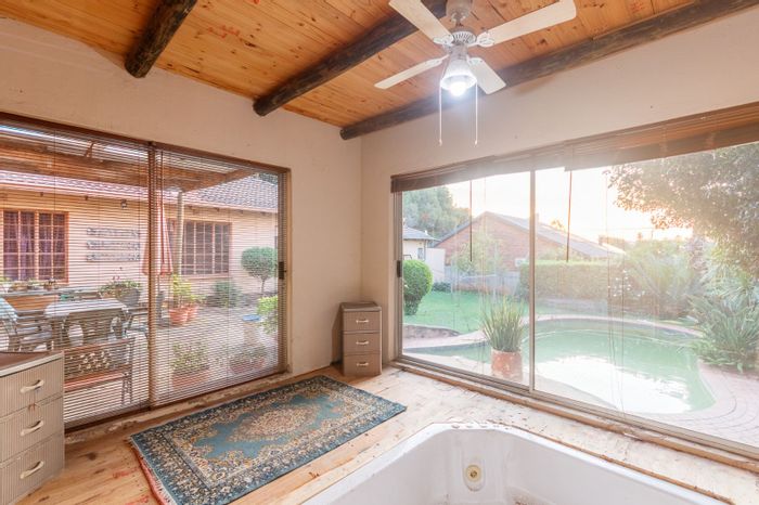 Relaxed family living in quiet Wilropark on 5,593m² with pool, boma and expansive garden. Includes 88sqm two‑bedroom cottage, three bedrooms, two bathrooms and double garage.