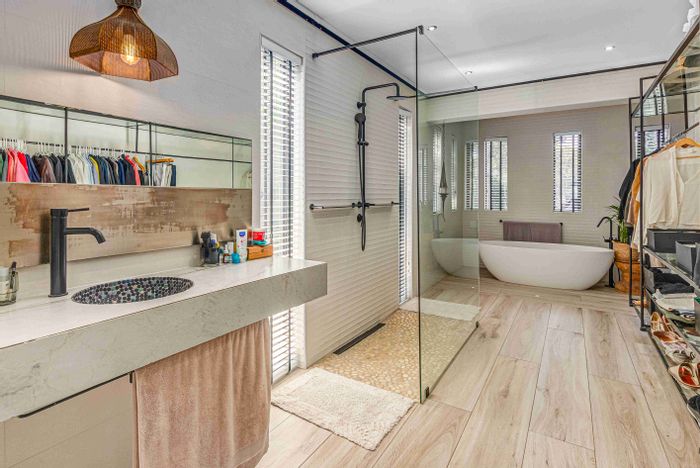 Upscale, boomed-off living in Sunninghill with 24-hour security and easy N1 access — modern open-plan interiors, near Virgin Active and Chili Lane; three bedrooms, two bathrooms, single garage.