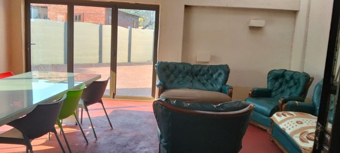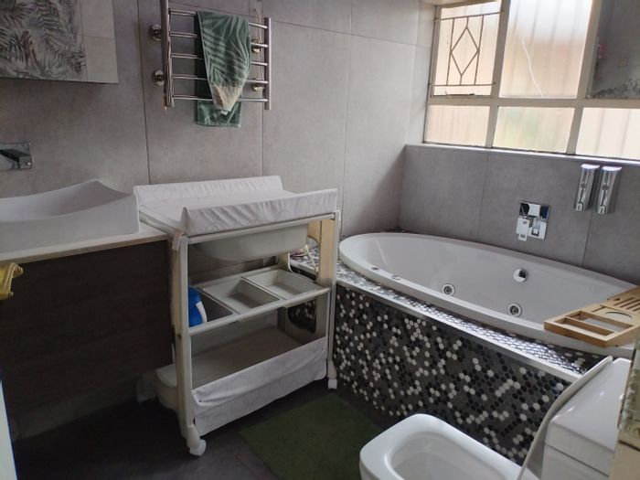 Relaxed family living in a quiet neighbourhood with a private garden, lounge overlooking greenery and built‑in braai for entertaining. Three bedrooms, 2.5 baths, double garage/carport; pool needs TLC.