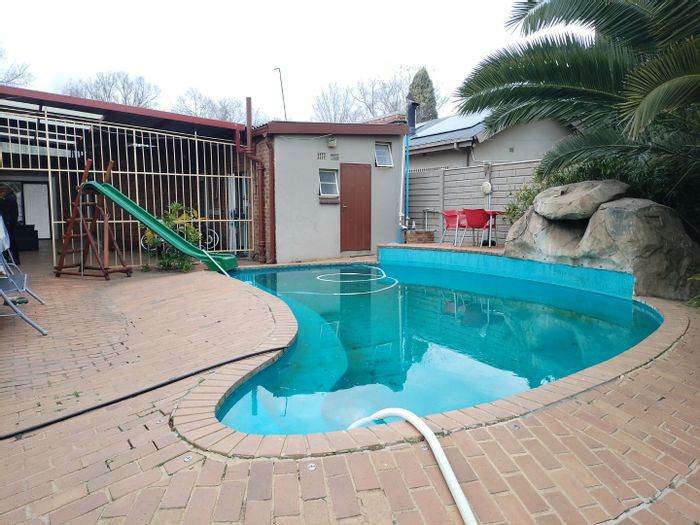 Entertainer's dream in established Selcourt, Springs — expansive garden with sparkling pool and built-in braai, plus staff quarters, double garage and automated gate for secure family living.