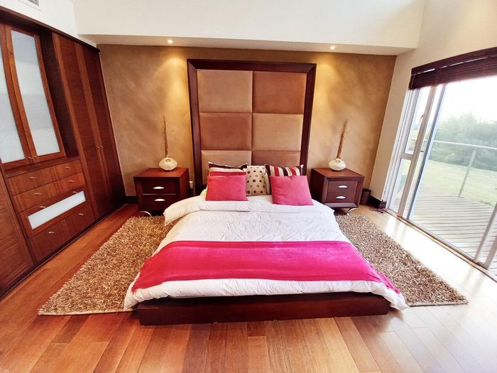 Enjoy tranquil Vaal Marina living with Bali-style design, mountain views, private garden and pool, modern chef’s kitchen — three bedrooms, three baths and double garage.