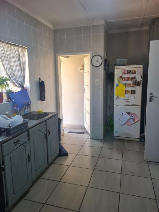 Quiet family-friendly home on generous 660 m² plot with expansive front and back yards and secure walls. Modern kitchen, separate flatlet, three bedrooms, bathroom, plus covered parking for three.