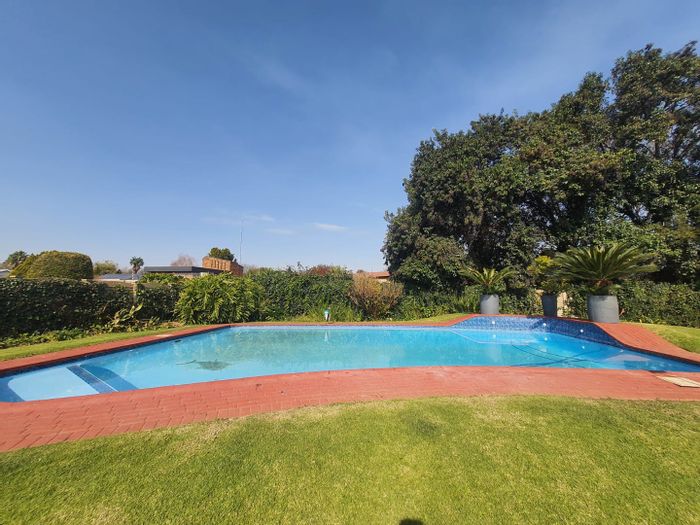 Entertainer's paradise in Vanderbijlpark — leafy neighbourhood living with a 13m pool and covered braai/bar area, plus a large kitchen, four bedrooms, three bathrooms, four-car garage.
