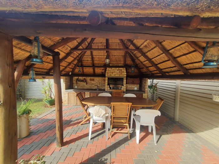 Entertainer's haven on a private 872 m² stand: pool and lapa braai, courtyard and built-in bar — spacious lounge, scullery kitchen, 3 beds, 2 baths, tandem garages.