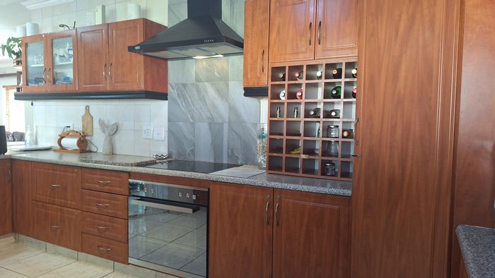 Relaxed family living with distant sea views and poolside entertaining — enclosed braai and modern flatlet for guests or rental; four bedrooms, three bathrooms, three garages.