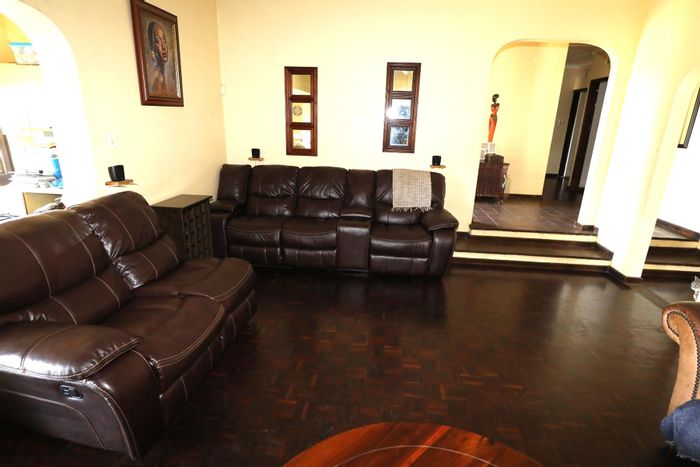 Versatile property near the main road offering income potential — main house plus two granny flats, pool, three garages and ample parking; five bedrooms, 2.5 bathrooms.