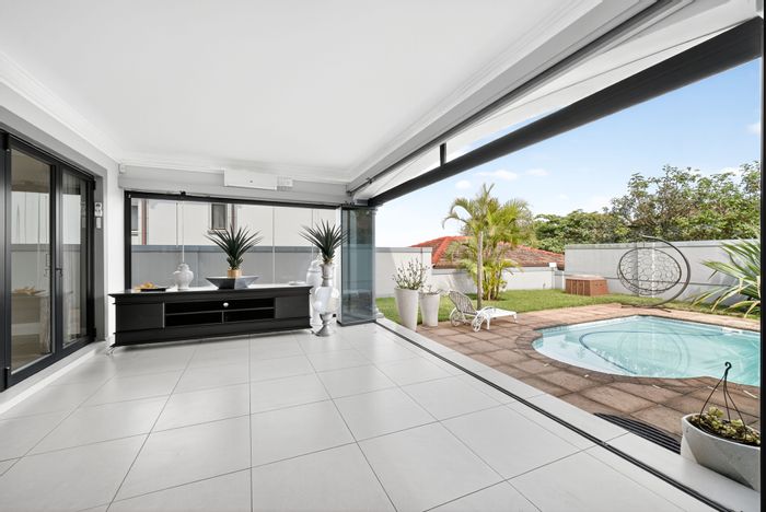 Beachfront lifestyle in Sheffield Beach, Ballito North Coast — direct beach access, panoramic sea views and private pool. Three en-suite bedrooms with entertainment decks and double garage.