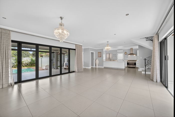 Relax and entertain in a private tropical oasis with a rock-finished pool and braai area, open-plan kitchen and scullery, plus four en-suite bedrooms and secure four-car garage.