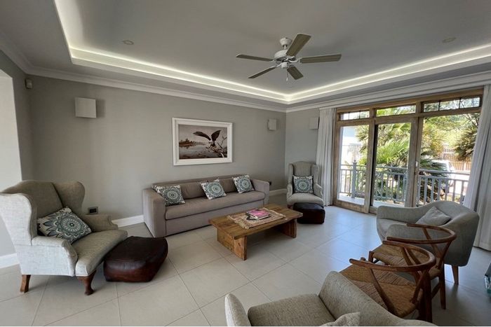 Fairway-front family entertainer in Umhlali Golf Estate, sunlit patio, pool and upstairs pajama lounge/study; golf-cart garage, solar panels, Country Club membership included, five minutes to Ballito.