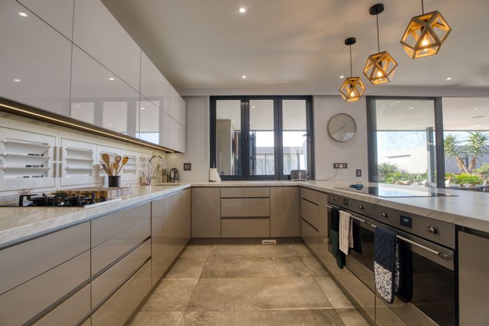 Indoor-outdoor coastal living near Ballito in Barbets Crest Estate with seamless open-plan flow to a sunny patio and central courtyard — modern kitchen with built-in coffee machine; three bedrooms, double garage.