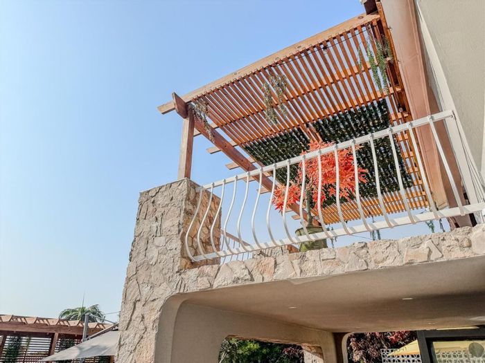 Walk to Salt Rock Beach from this spacious family home with sweeping sea views, L-shaped veranda and pool, manicured garden, solar backup and robust security — 4 beds, 2.5 baths.