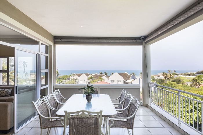 Relaxed coastal living in Salt Rock, Ballito — covered patio with sea views and SMEG kitchen appliances, estate amenities and three bedrooms, three baths, double lock-up garage.