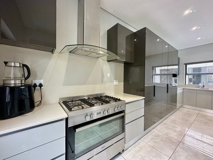Effortless family living in a quiet cul‑de‑sac with distant sea views and estate walking trails; enclosed balcony, pool and modern kitchen with Smeg stove. Four bedrooms, three bathrooms, double garage.