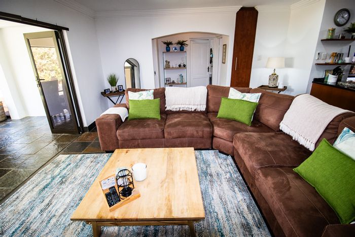 Relaxed family living in a quiet cul-de-sac within a pet-friendly, secure estate close to shops, school and hospital — enjoy distant sea views and a private pool with entertainment area.