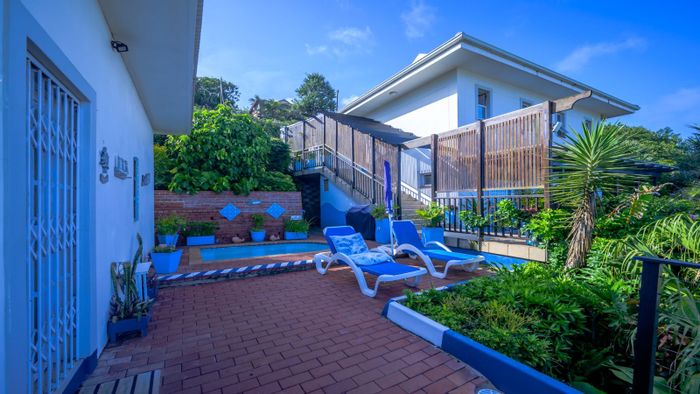 Ocean-facing Sheffield Beach sanctuary on 3,377m² — three en-suite bedrooms with balcony views, sheltered braai and pool, private waterfall, direct beach access and one‑bed flatlet.