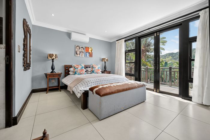 Relaxed coastal entertaining in Zimbali with effortless indoor-outdoor flow, sweeping ocean views and Valley of the Pools access. Features private pool, indoor bar and six en-suite bedrooms.