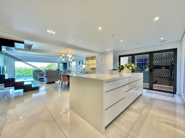 Resort-style coastal living with private beach access and golf-course vistas in Zimbali; heated swimming pool and wraparound balcony complement four ensuite bedrooms and double garage.