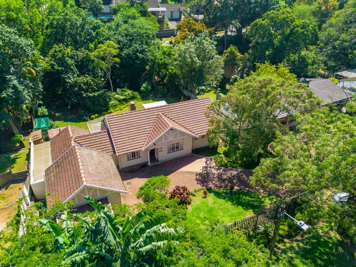 Hillside Clare Estate living with sweeping Durban views, wrap-around balcony and entertainer's lounge. Fully fitted kitchen, income-generating two 1-bed flatlets, three bedrooms, two bathrooms, double garage.