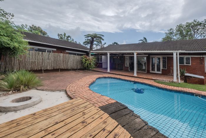 Entertainer's family home in Glen Anil, steps from local amenities and Durban access, featuring a sparkling pool, four en-suite bedrooms and double automated garage for easy family living.