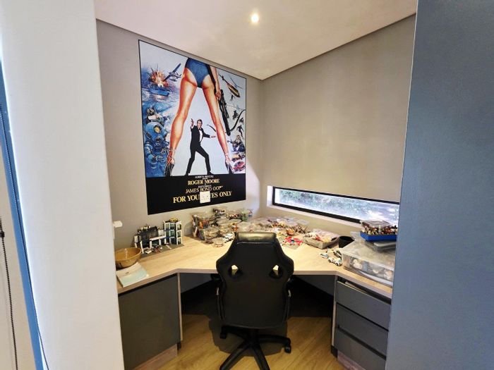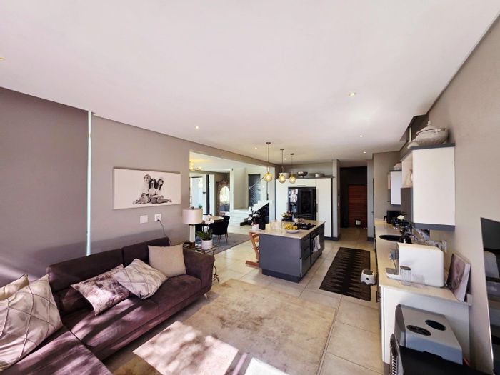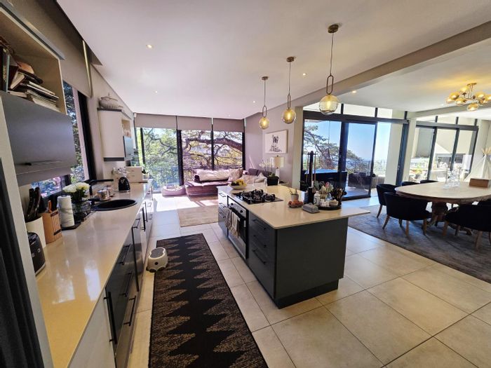 Entertain effortlessly on 2000 m² of landscaped indigenous gardens with a sweeping patio, built-in braai and projector; four ensuite bedrooms, pool and quadruple covered parking.
